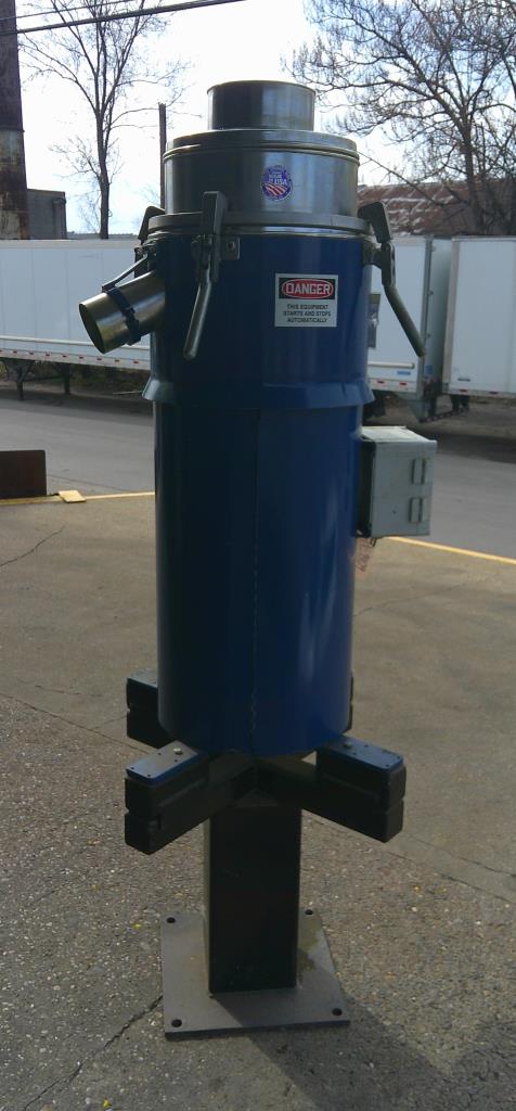 Vorti-Siv circular shaker screener model # RBF15, serial # 15820. The inlit is 7 3/4" in diameter and the two outlets are 2 3/4" and 3 7/8" in diameter. The screener sits on a 22 1/2" tall removable stand. Requires 110 vac 1 ph electricity. Overall dimentions 29" wide by 29" deep by 75" tall.Vorti-Siv
