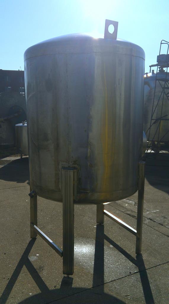 Stainless steel 428 gallon vertical tank. The diameter is 47" and the straight side height is 52". The bottom dish has a 7.5" depth. The manway is 17.5" wide by 13.5" tall. The inlets above the manway are threaded and 0.5" and 1.5" in diameter. The threaded outlet is 2" in diameter. Overall dimentions are 48" wide by 56" long by 91" tall.Stainless Steel
