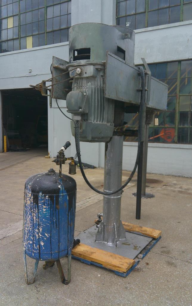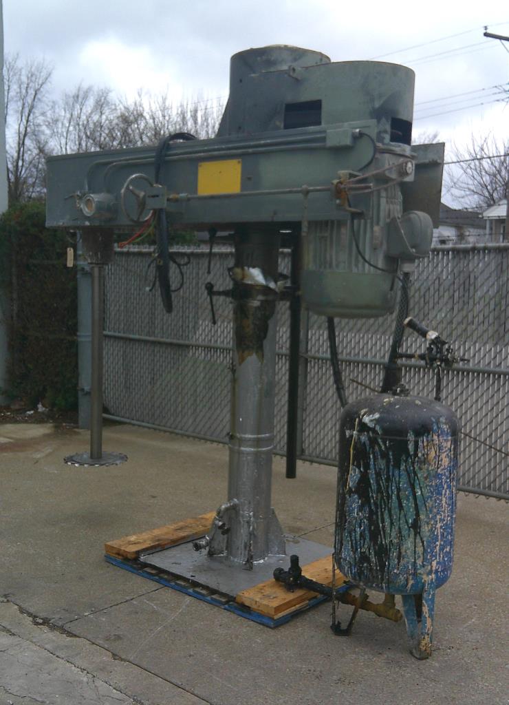 Hockmeyer disperser has a 3" stainless steel shaft length of 48" and a blade diameter of 16.25". Unit is equipped with an air over oil lift. Variable speed. Driven by a 50 hp, 1800 rpm motor that requires 230/460 vac, 3 ph electricity. Overall dimentions are 41" wide by 103" long by 106" tall. Motor is tagged for hazardous location.Hockmeyer