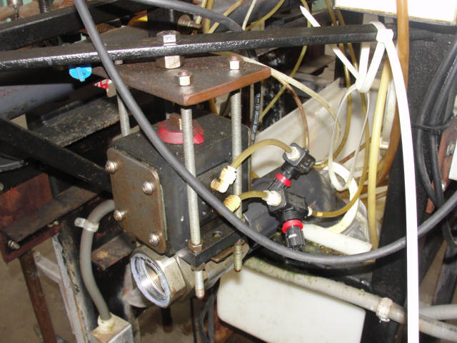 Unknown manufacturer . 14 Head inline liquid pressure filler. Unit has (2) 1 hp centrifugal pumps. Missing PLC control panel and two filler heads. Requires, 230 vac 3 ph and 120 vac electrical and pneumatic supplies. Last used for cleaning products. Missing PLC and two heads. Project or parts.Liquid Pressure Filler