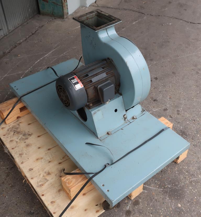 3 HP centrifugal fan mounted on a 22" wide x 45" long platform with casters. The inlet is 7.5" OD. Outlet is 6" x 5". Material is carbon steel. Motor is induction motor. 230/460 vac 3 ph power required.Carbon Steel