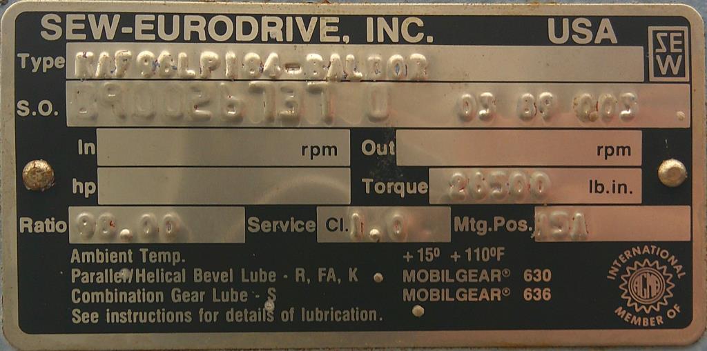 1500 gallon insulated vertical mixing tank. Tank is 72" ID x 80" straight side. Top and bottom dished heads. Top has 17" diameter hinged lid manway. Top has four 4" tri clamp nozzles. Bottom has 4" tri clamp nozzle. Top agitator is SEW-Eurodrive # KAF96LP184- Baldor with 5 HP electric motor 1725 RPM using 208-230/460 power required. Please note that the drive is attached but the coupler between the drive and the shaft is missing. There cosmetic dents in the skin that do not affect the tank shell.Stainless Steel
